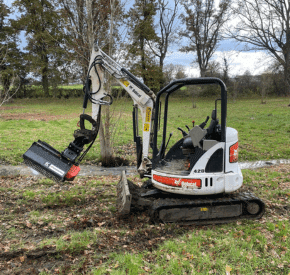 Je peux réaliser de gros travaux de débroussaillage, défrichage et remise en état avec une mini-pelle équipée de godets de terrassement et d’un broyeur. En cas de travaux spécifiques, je loue les équipements adaptés pour faire un travail de qualité et en sécurité.